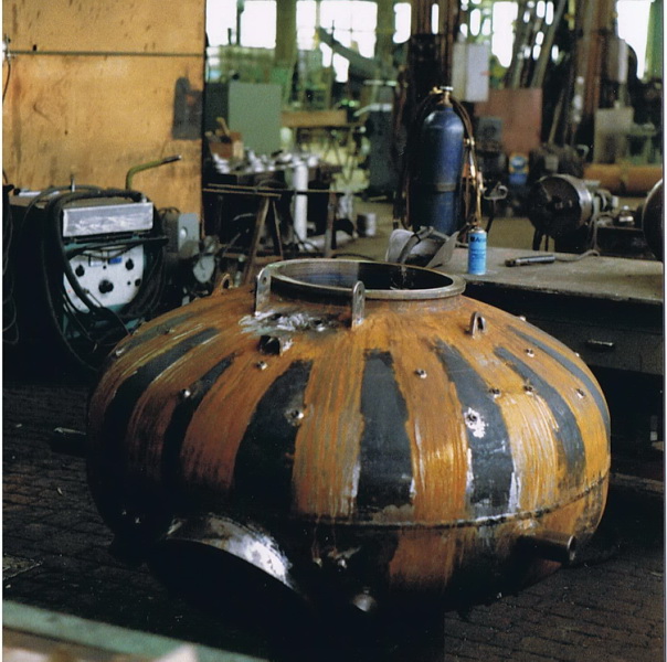 Tlakové těleso v dílně firmy Demuth v Dättwilu, Švýcarsko.