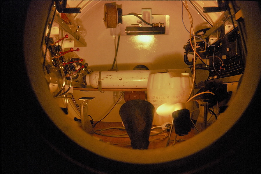 Vniřtek kabiny. V pozadí zařízení na regeneraci vzduchu.