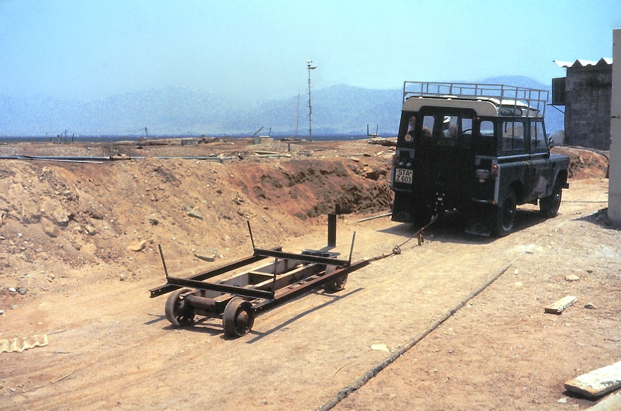 Vozík byl sestaven ze zbytků důlniho vagonu opustěného dolu měděné rudy.